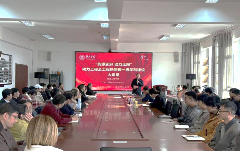 为加强学科建设,提升人才培养质量,11月14日上午,能源工程学院在逸夫楼B402会议室隆重举办榆溪学科大讲堂,特邀西安交通大学国家级领军人才陈斌教授,以《“能源澎湃动力无限”——动力工程及工程热物理一级学科建设》为题开展专题报告。报告由榆林学院党委副书记闫龙主持,能源工程学院常务副院长孙志勇、党总支副书记史俊霞、全院教师以及2025级能源动力研究生参加。