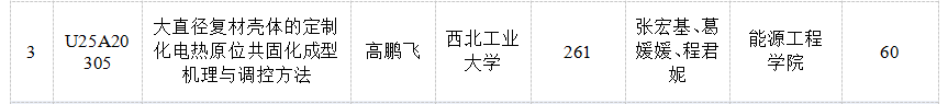 近日,2025年度国家自然科学基金区域创新发展联合基金项目评审结果正式揭晓。由西北工业大学牵头、我院智能制造专业负责人张宏基副教授作为项目骨干联合申报的《大直径复材壳体的定制化电热原位共固化成型机理与调控方法》项目成功获批立项。项目总经费261万元,其中我院独立承担研究经费60万元。